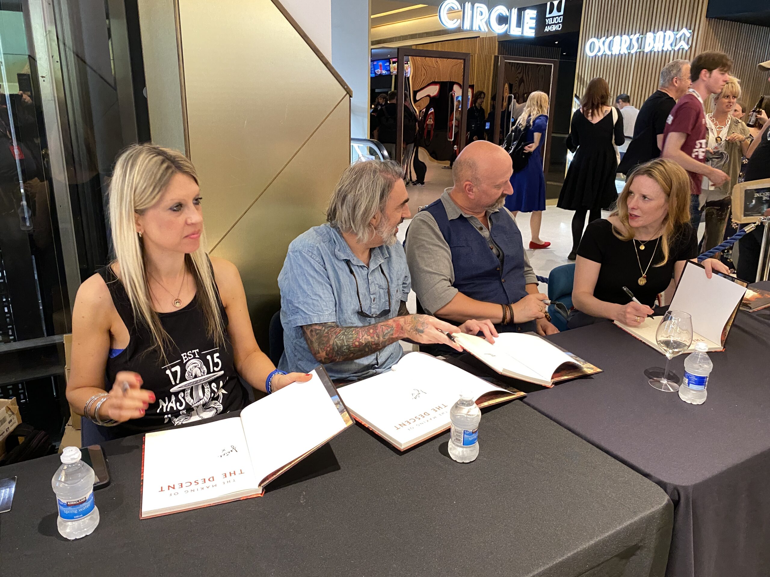 Jeg fik mit eksemplar af “The Making of The Descent” signeret af bogens forfatter Janine Pipe (tv) samt af Paul Hyett (special fx makeup), instruktør Neil Marshall og hovedrolleindehaver Shauna Macdonald.